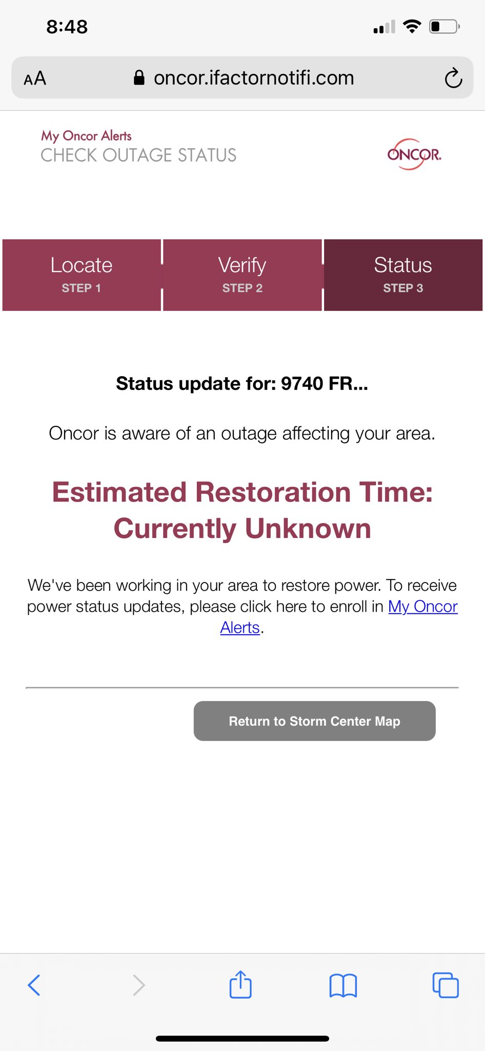 You can view the Oncor Storm Center Outage Map. Its set to be near record high temperatures tomorrow so naturally oncor shut the power off as I was trying to sleep around 130am and estimated an on time of 230pm. In the event of a metro Dallas electricity outage call the Oncor Electric power outage number at 888-313-4747.